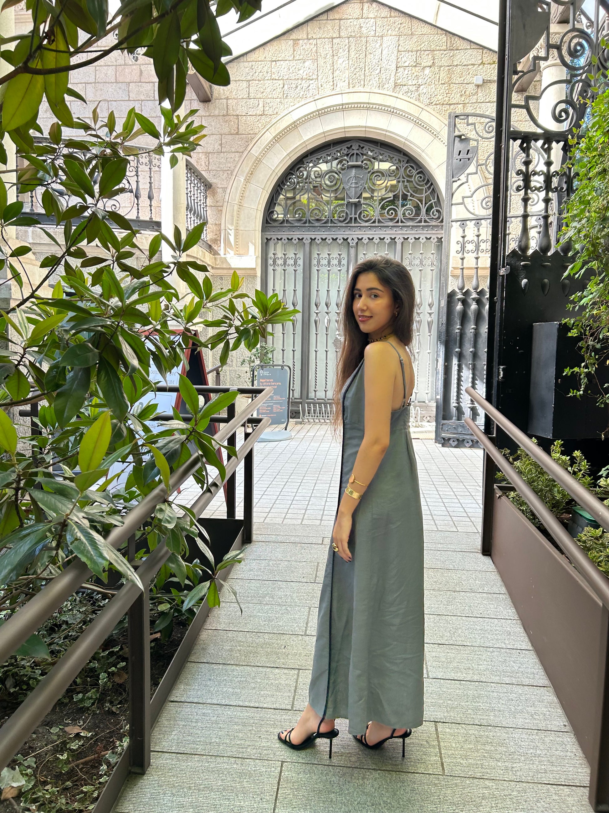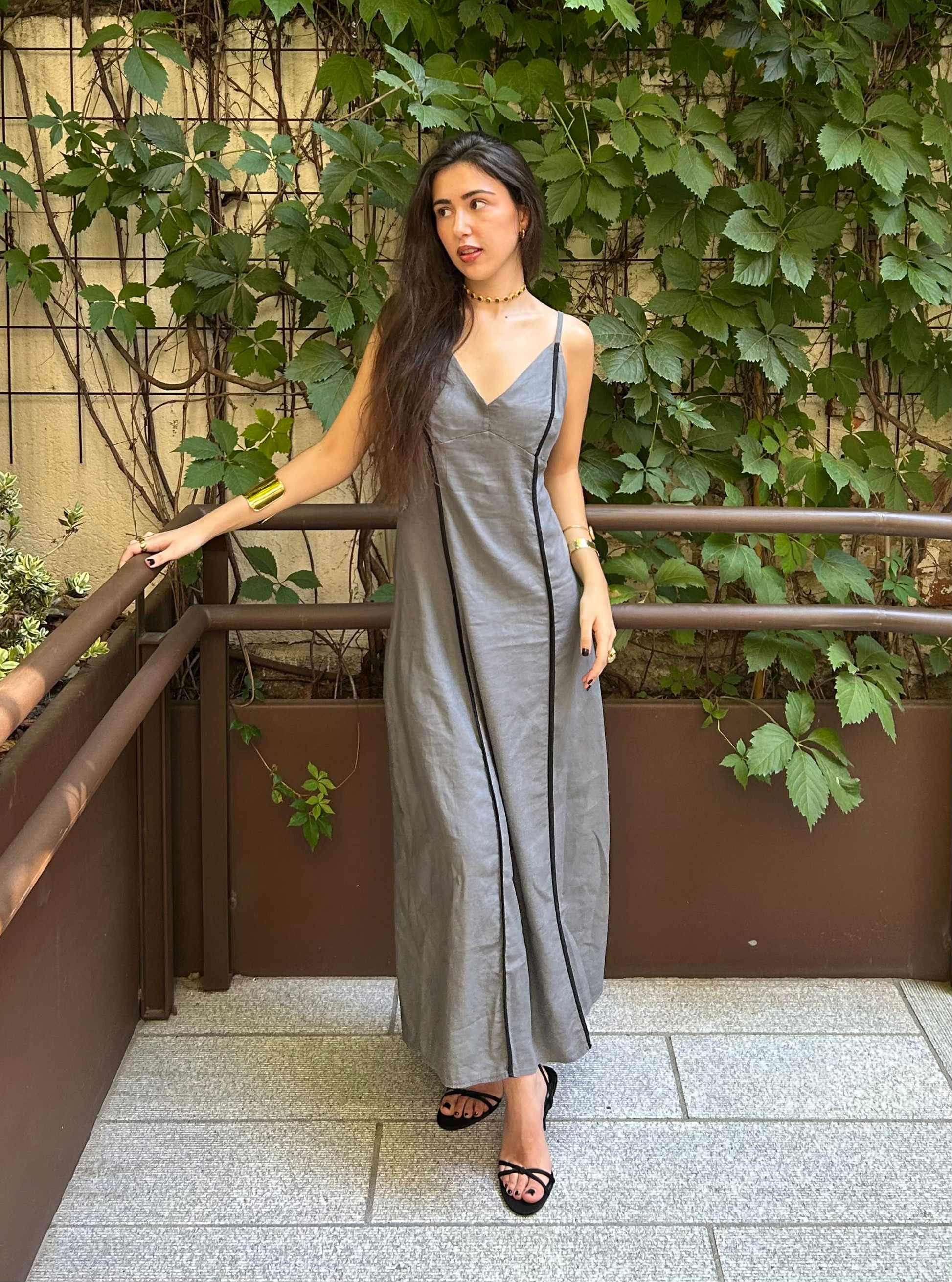 Vestido largo con un diseño fresco y estilizado. Está confeccionado en una mezcla suave y ligera de 55% lino y 45% viscosa, lo que lo hace transpirable y cómodo al llevar.