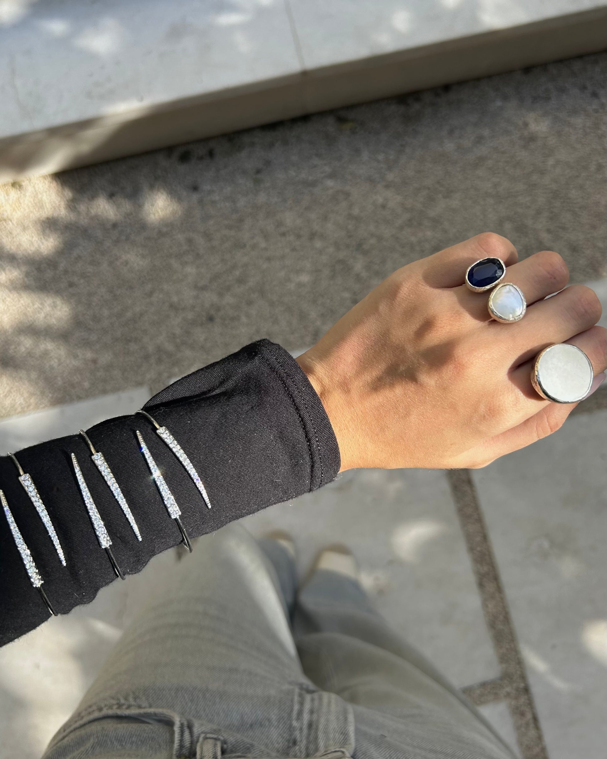 Este anillo está hecho a mano en latón bañado en plata esterlina de primera ley S925 y nácar.